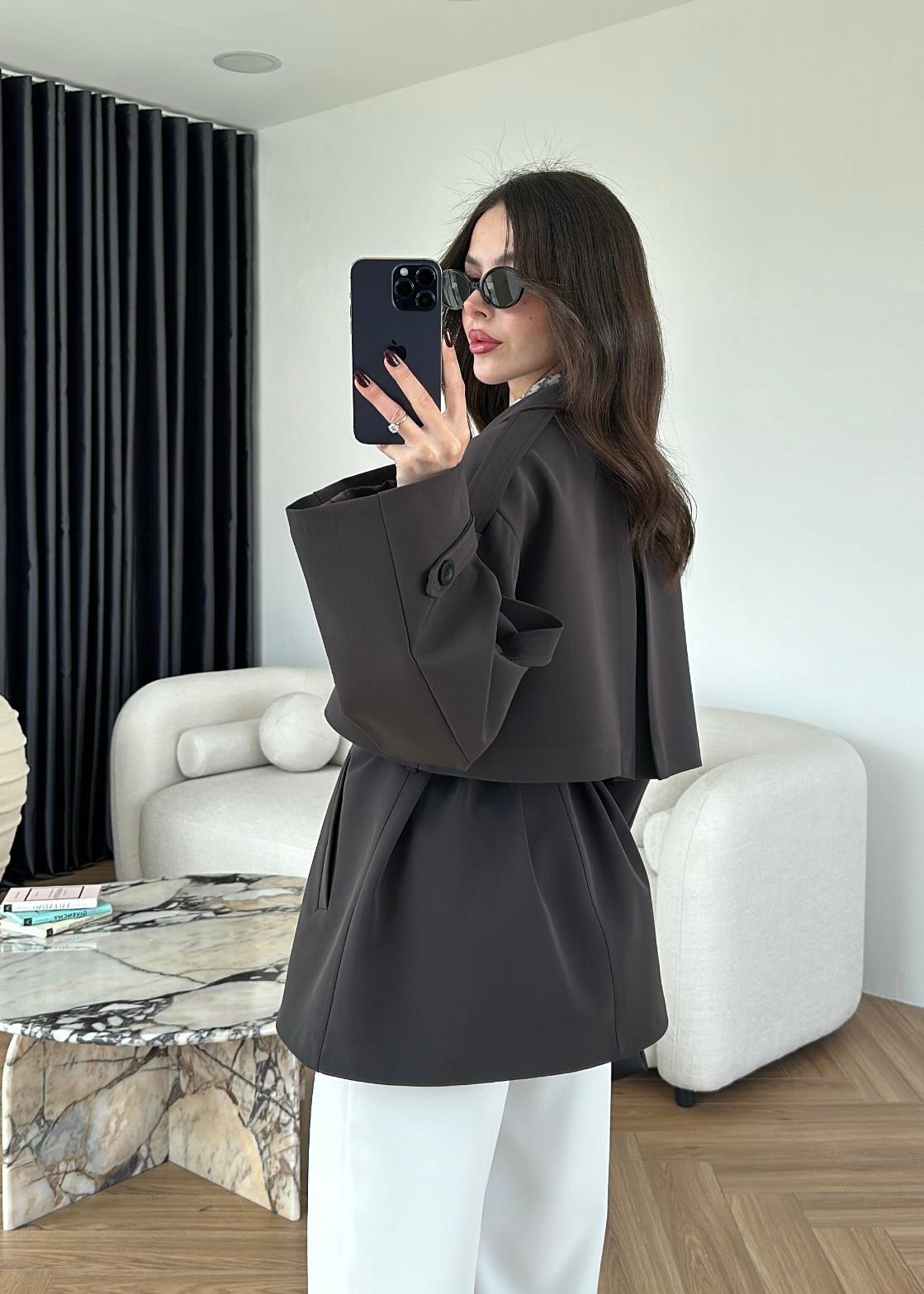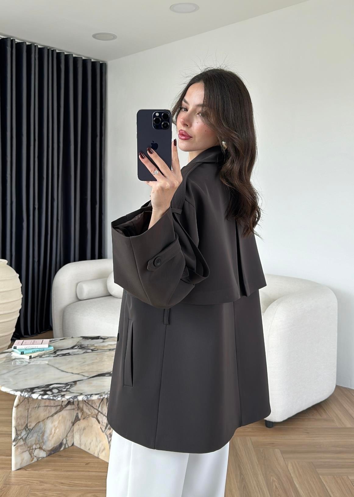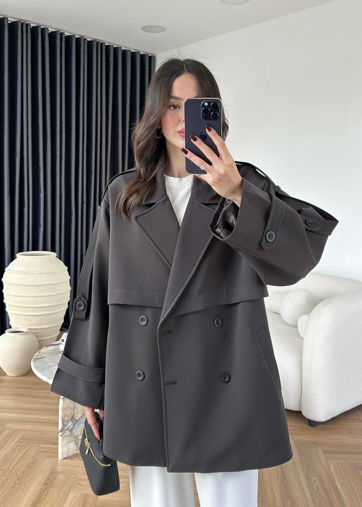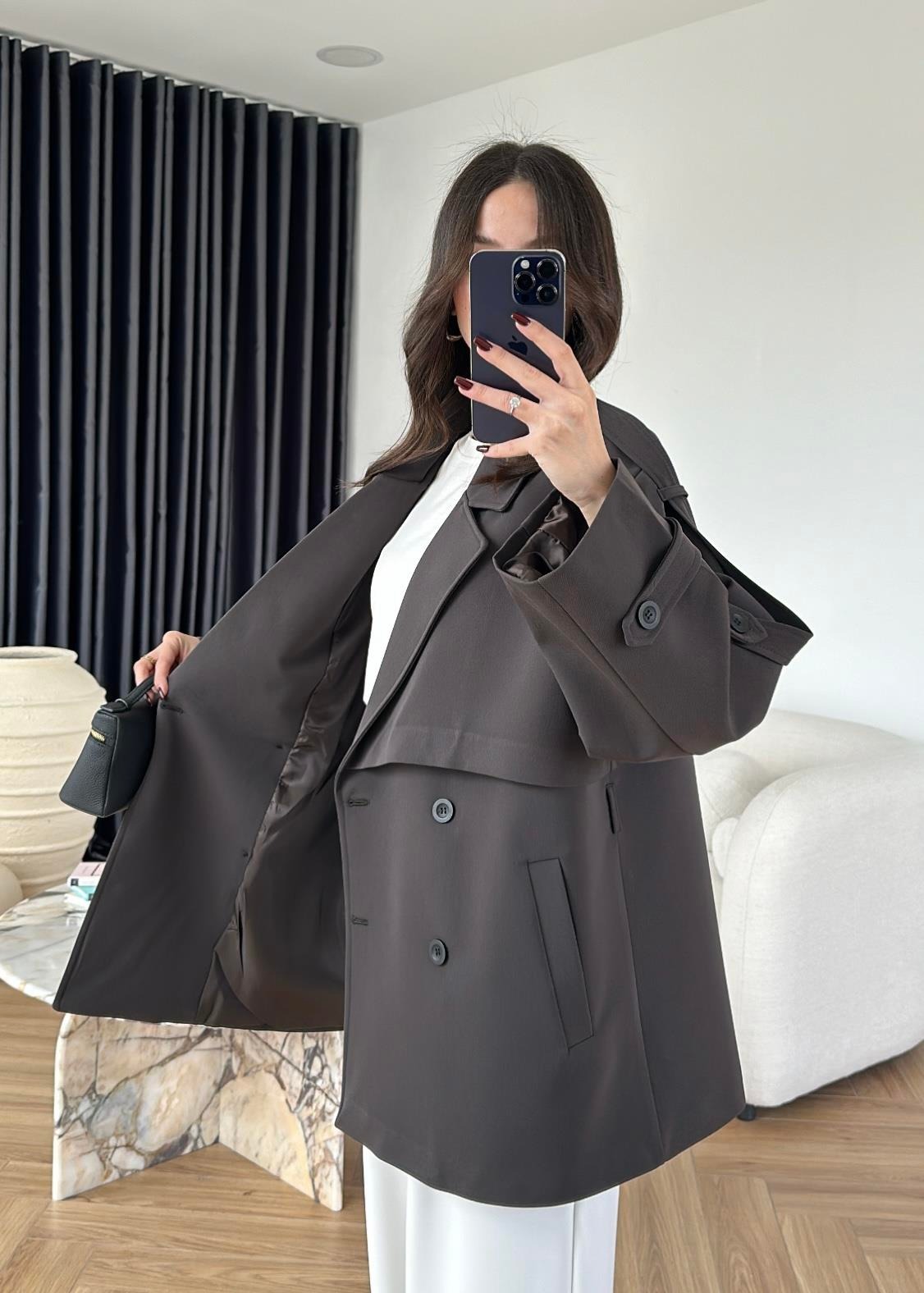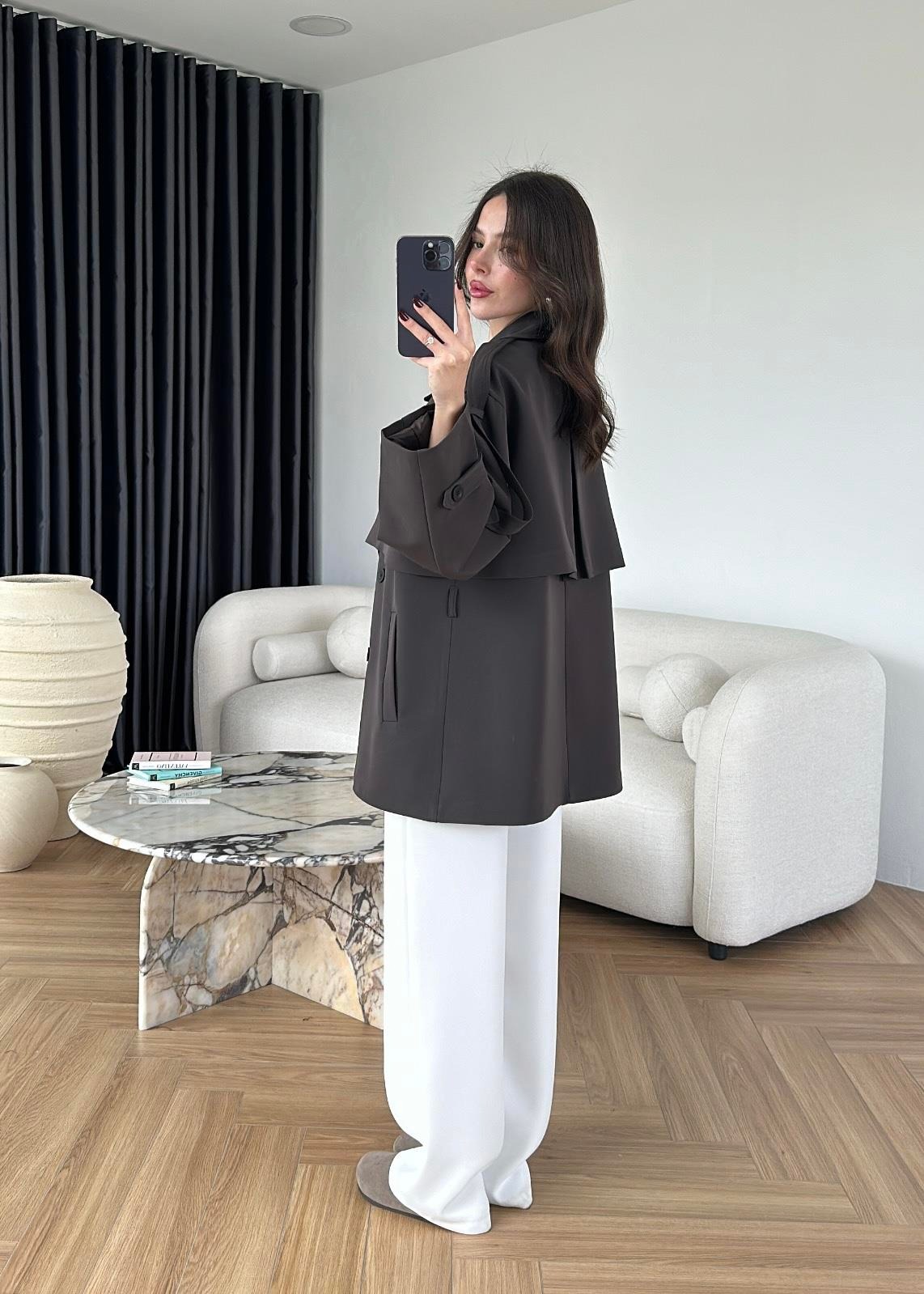 Rüzgarlıklı Ara Boy Trençkot GRİ KAHVE