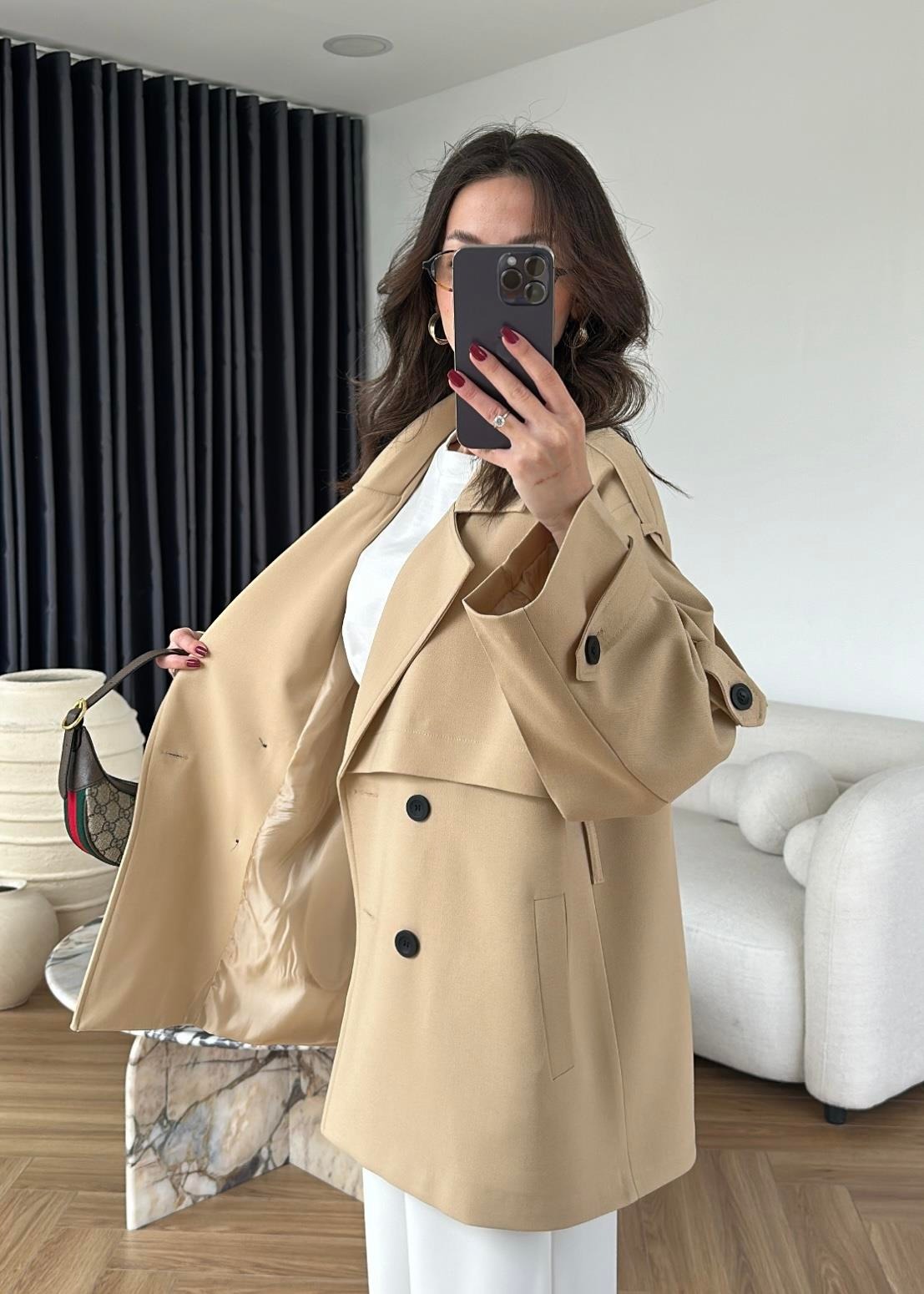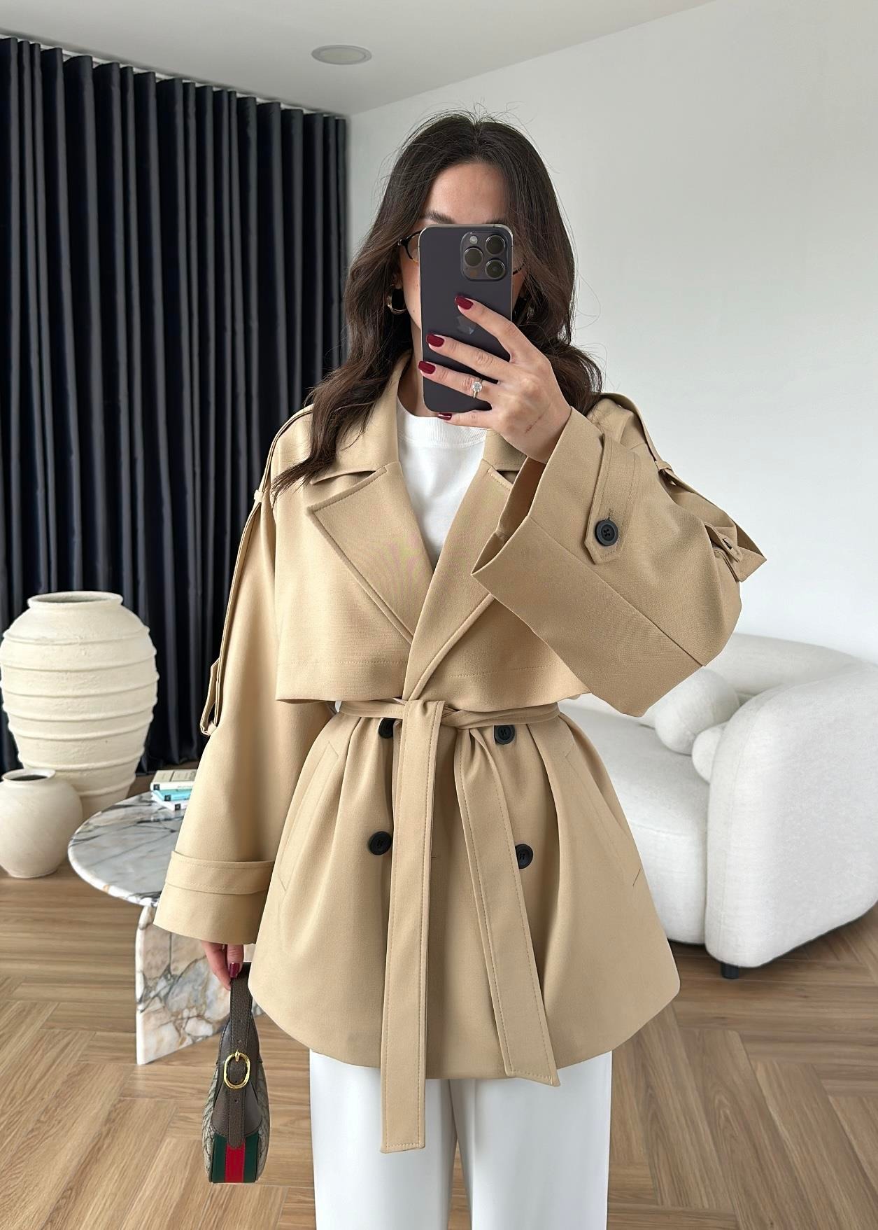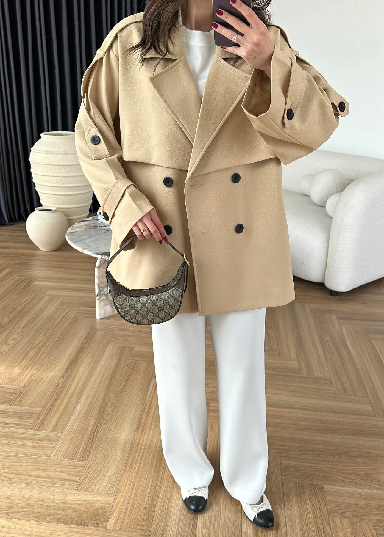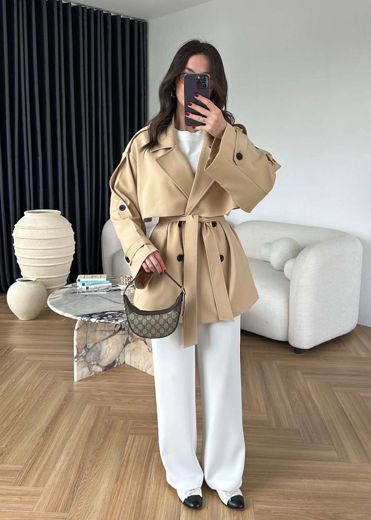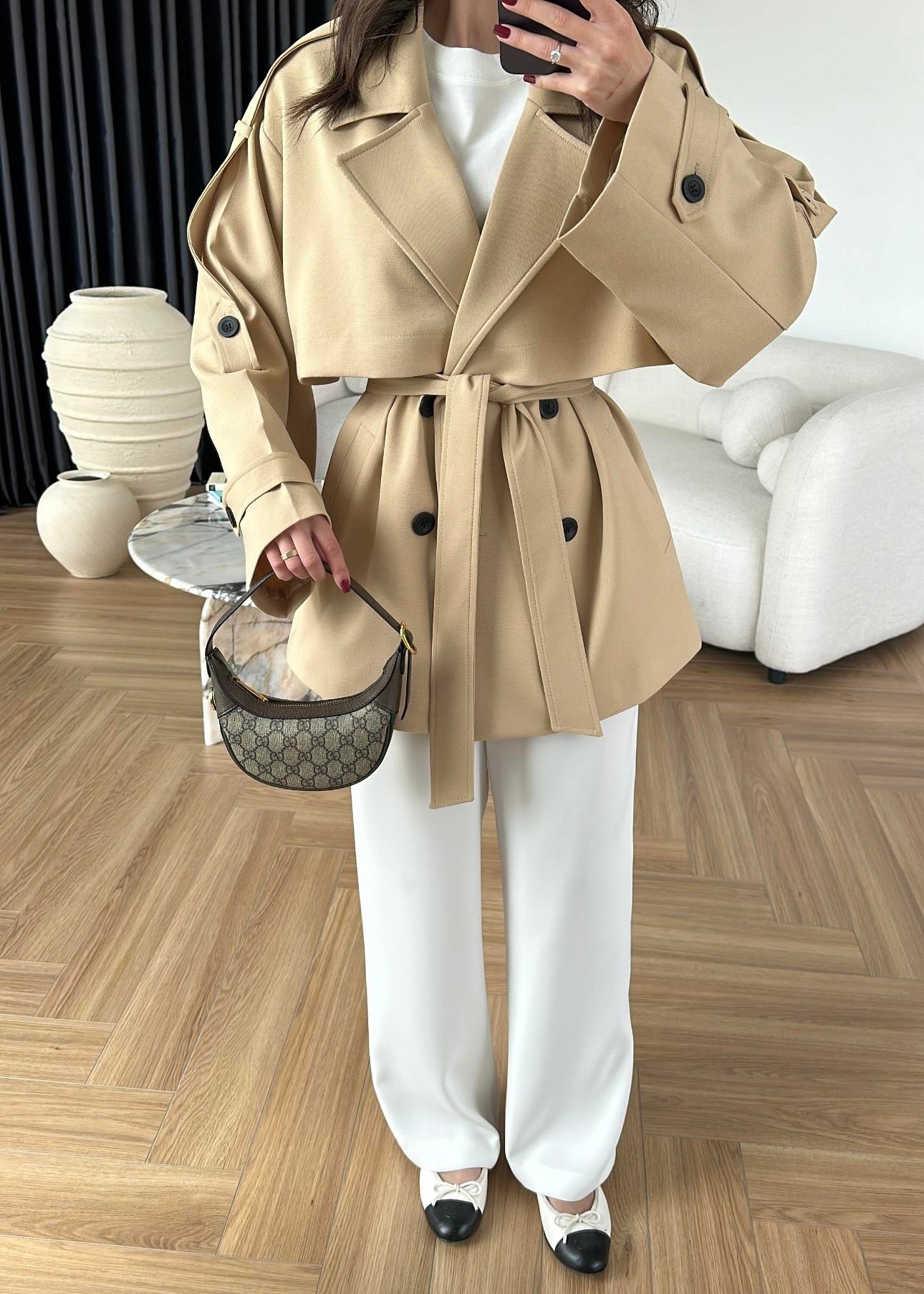 Rüzgarlıklı Ara Boy Trençkot BEJ