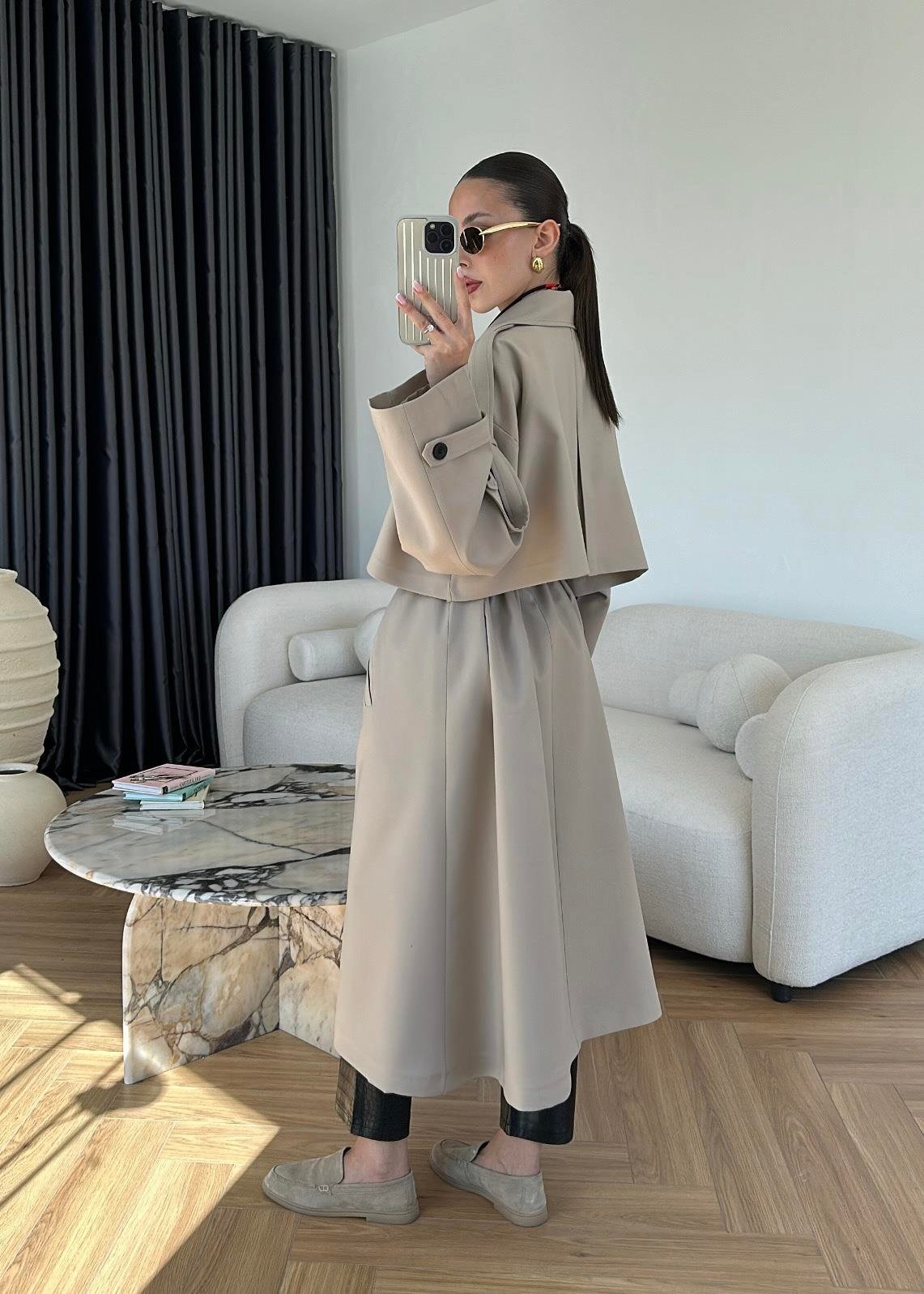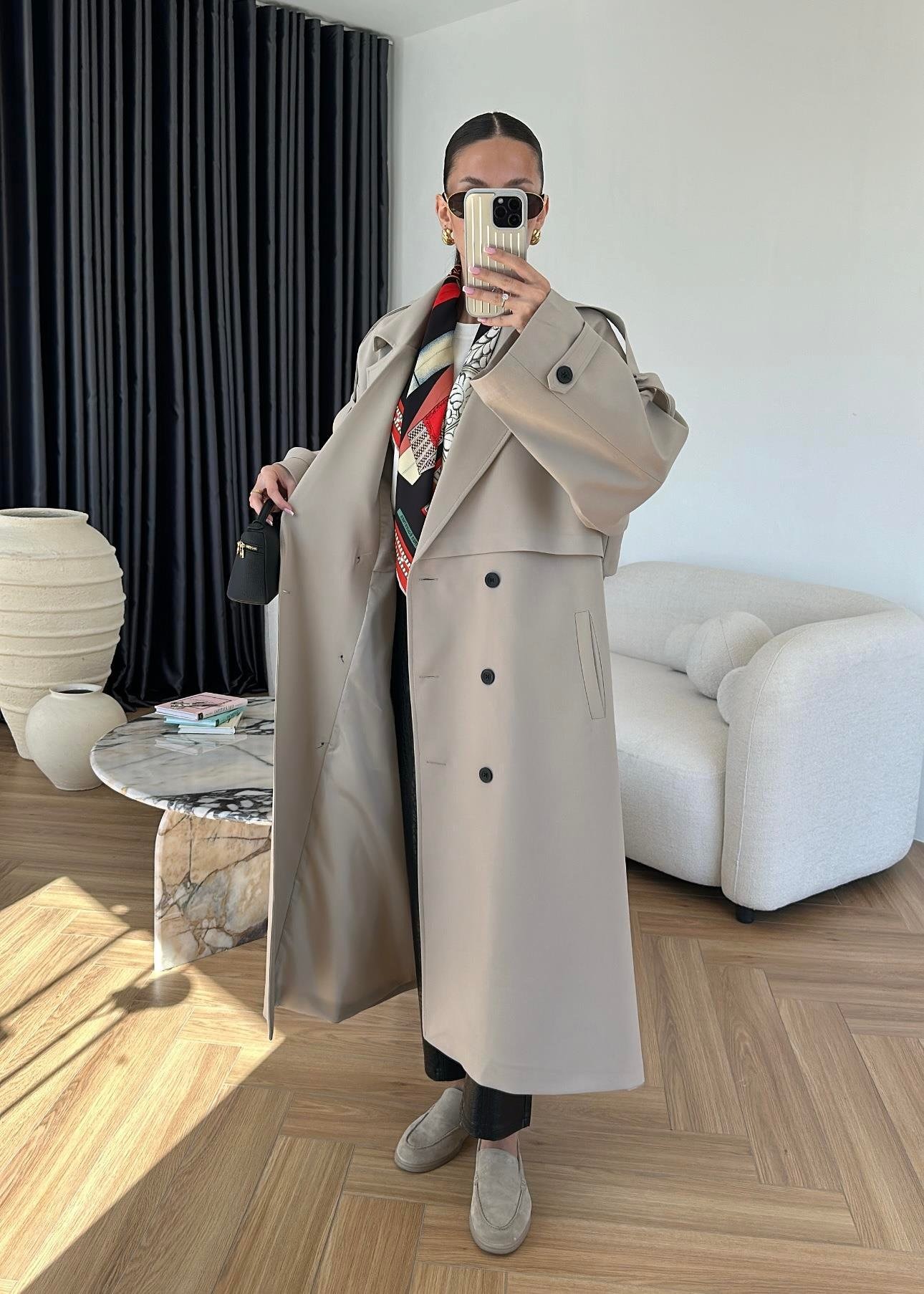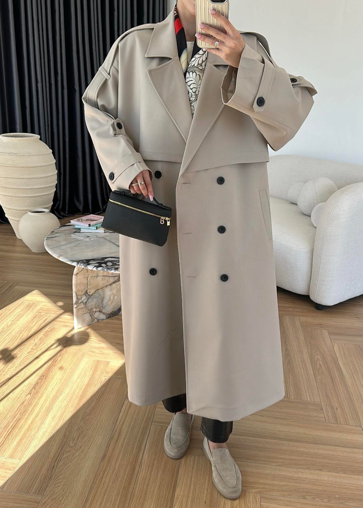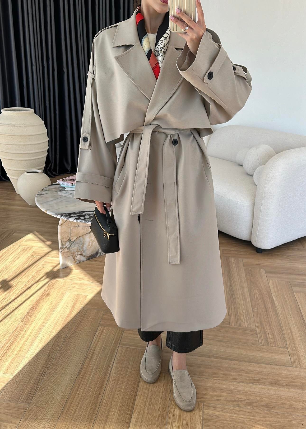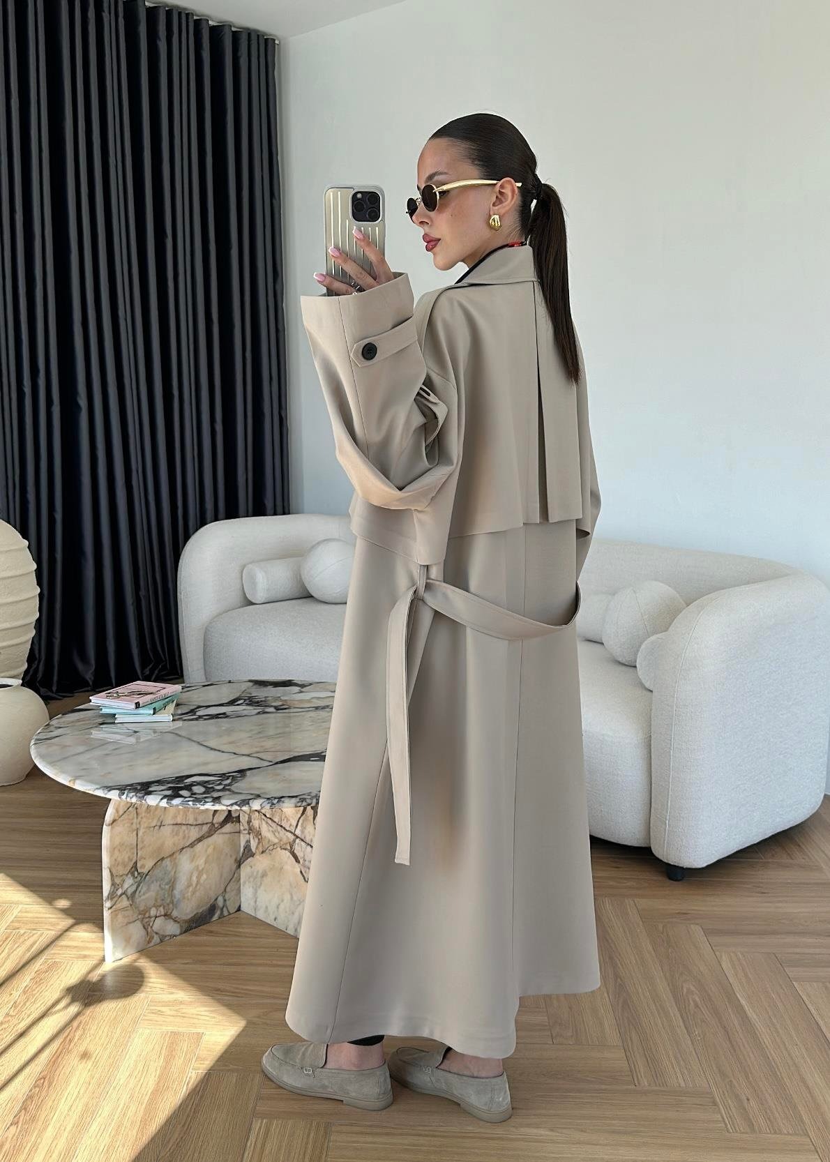 Omuzu Uzun Apoletli Trençkot TAŞ