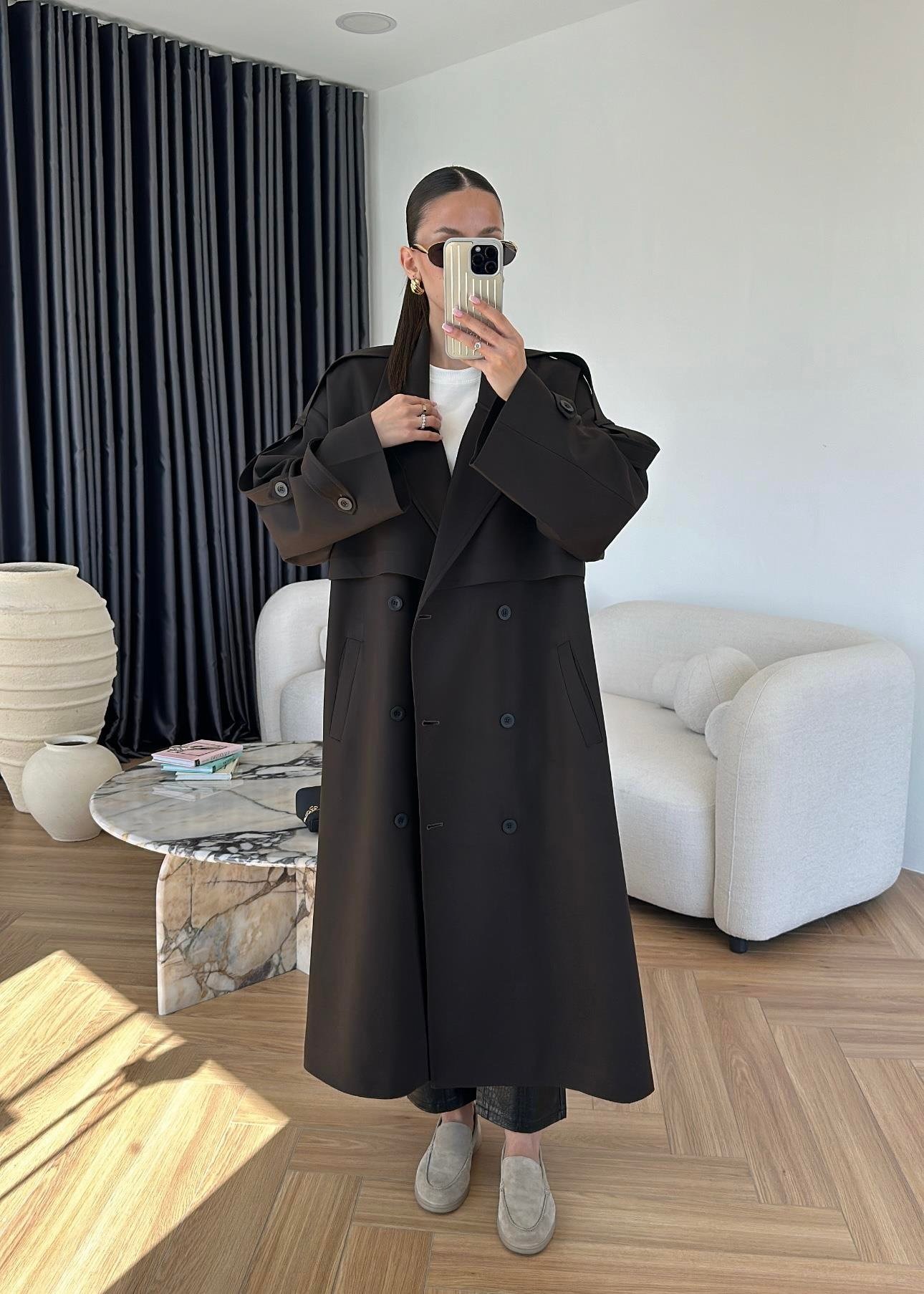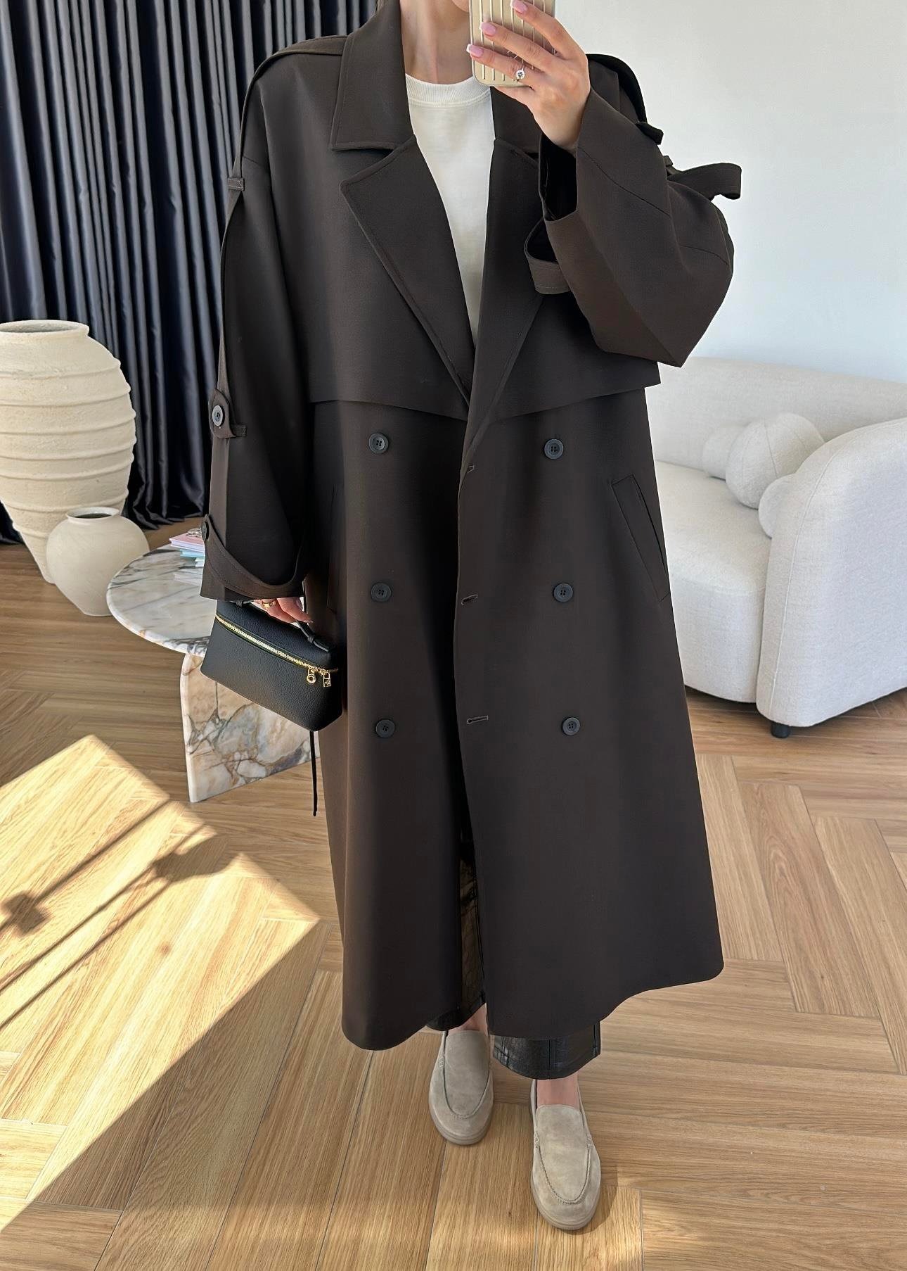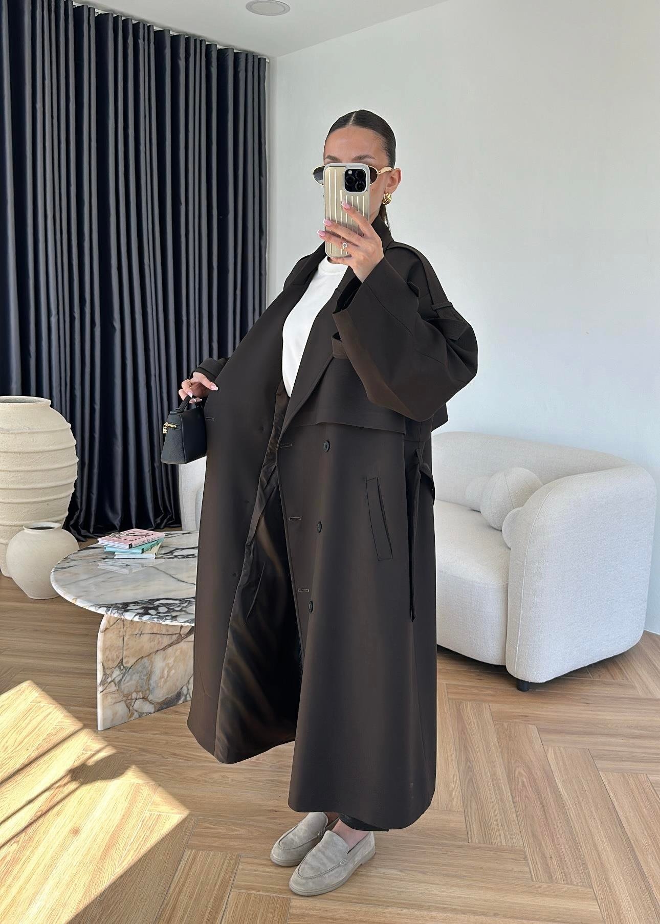 Omuzu Uzun Apoletli Trençkot ACI KAHVE