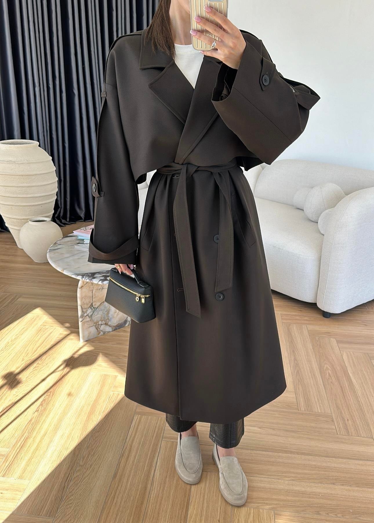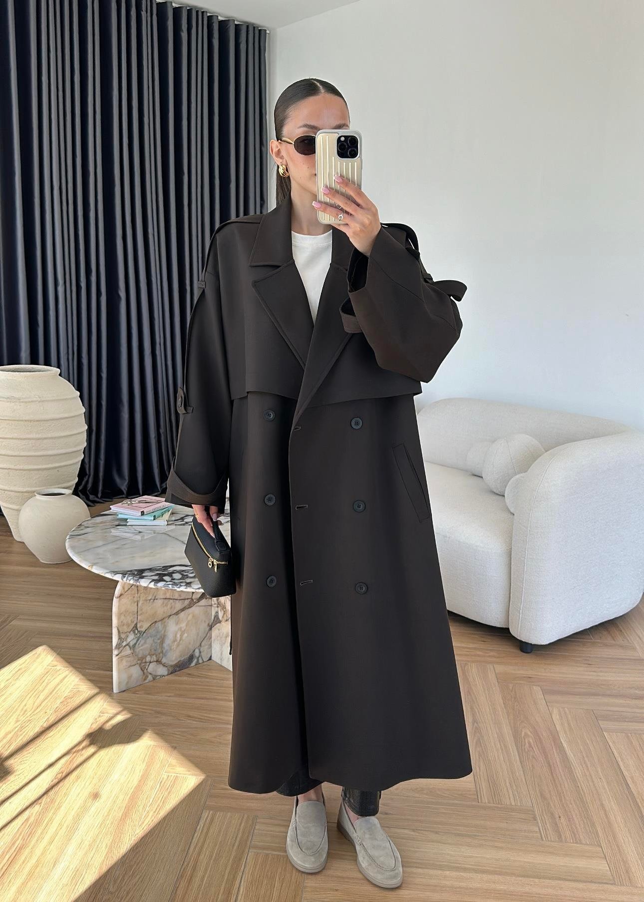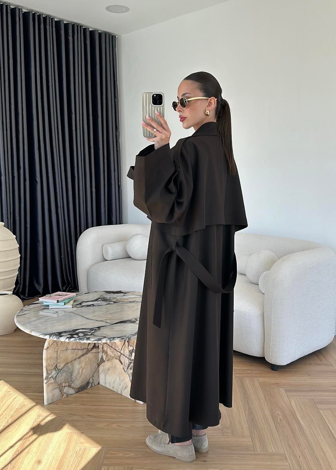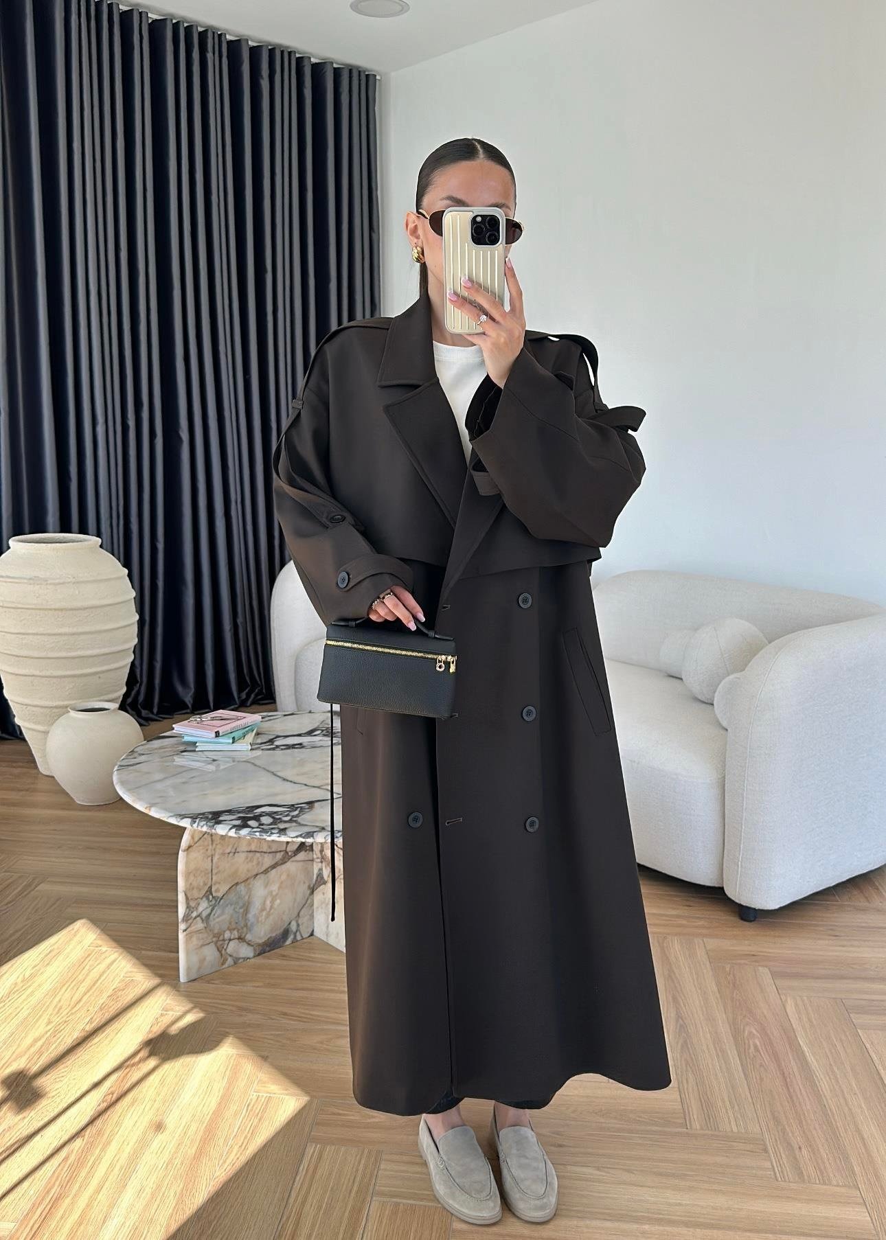 Omuzu Uzun Apoletli Trençkot ACI KAHVE