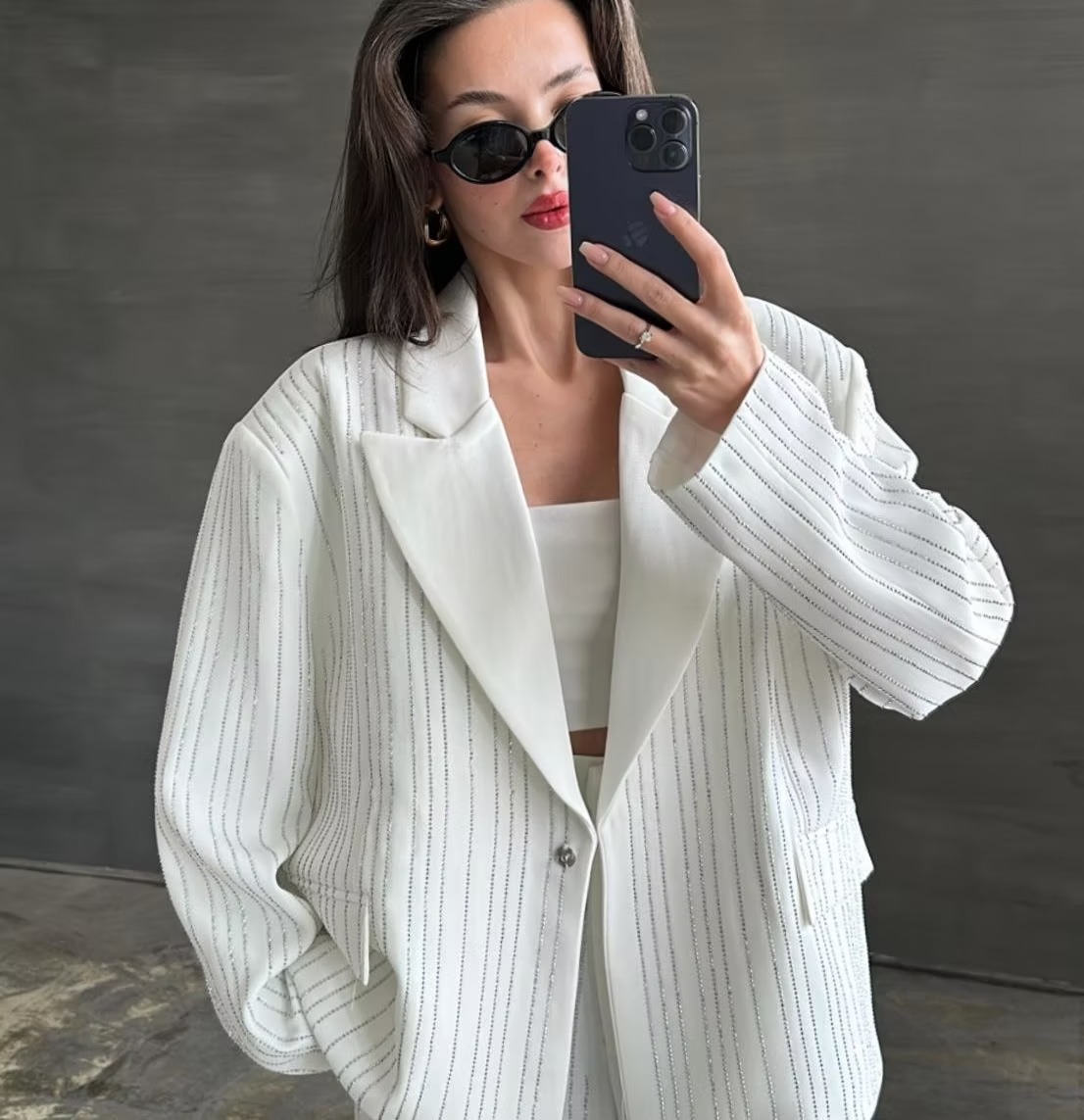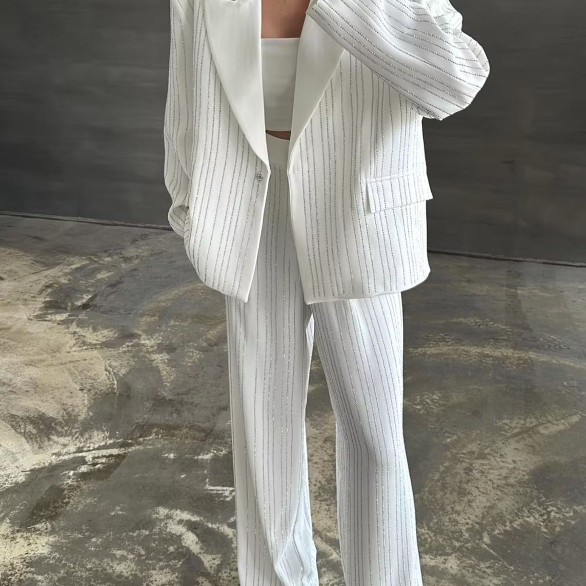 Premium Taşlı Takım BEYAZ