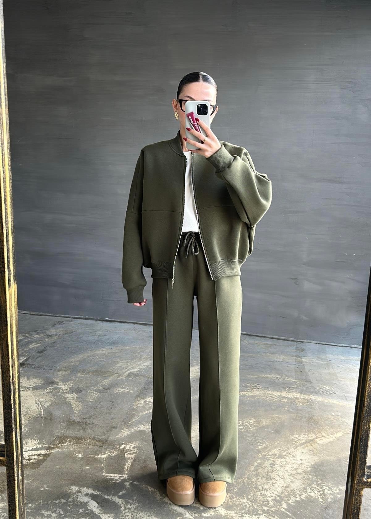 Önden Dikişli Şardonlu Takım HAKİ