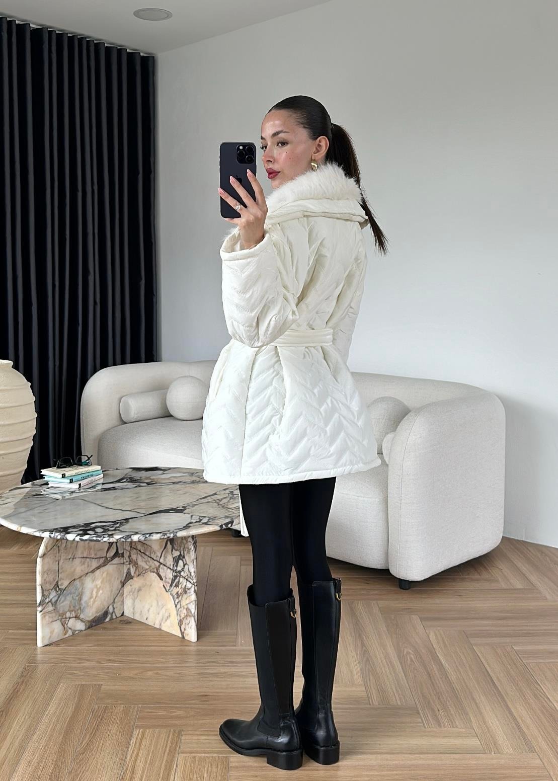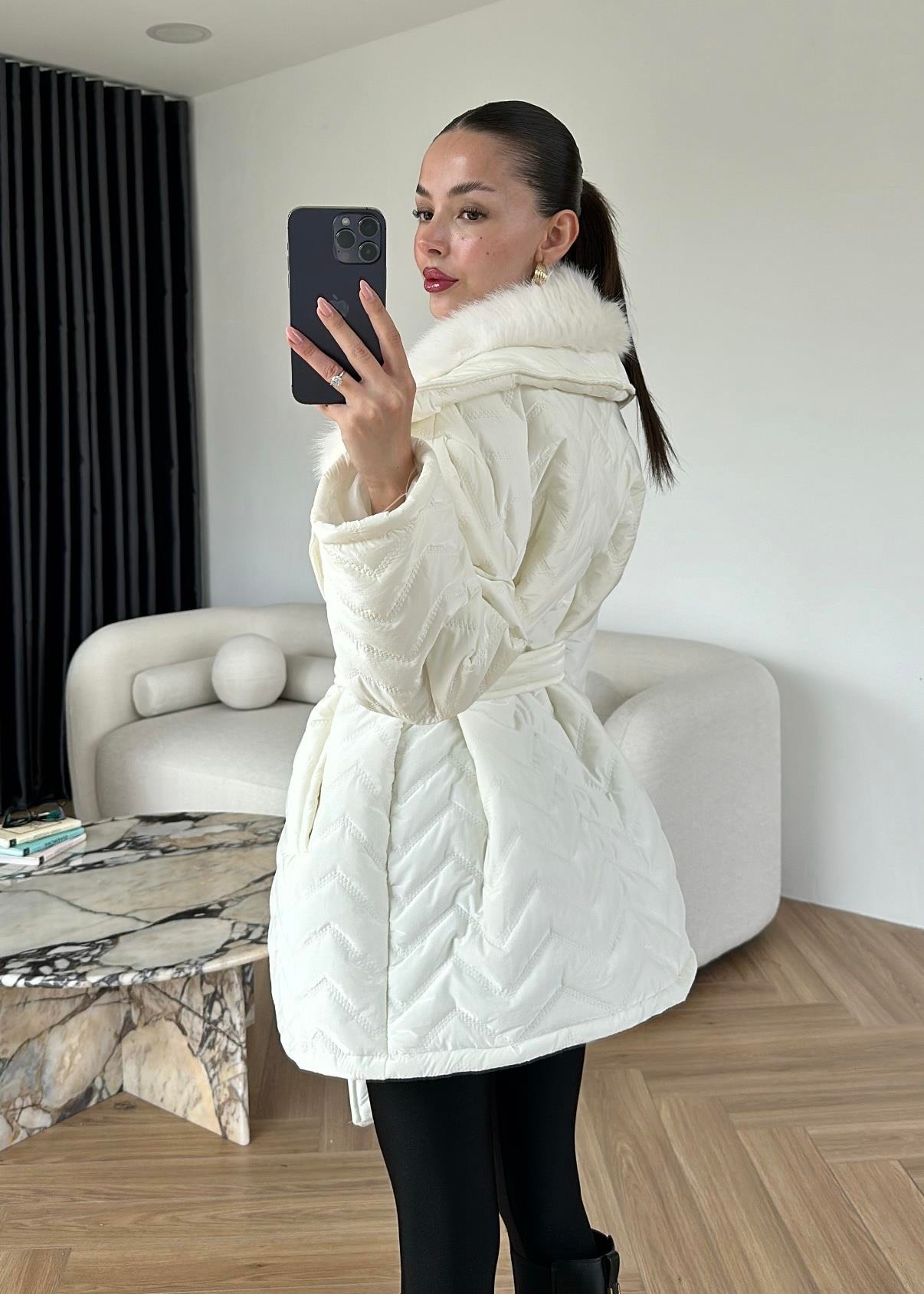 Rugan Kürk Detaylı Mont EKRU