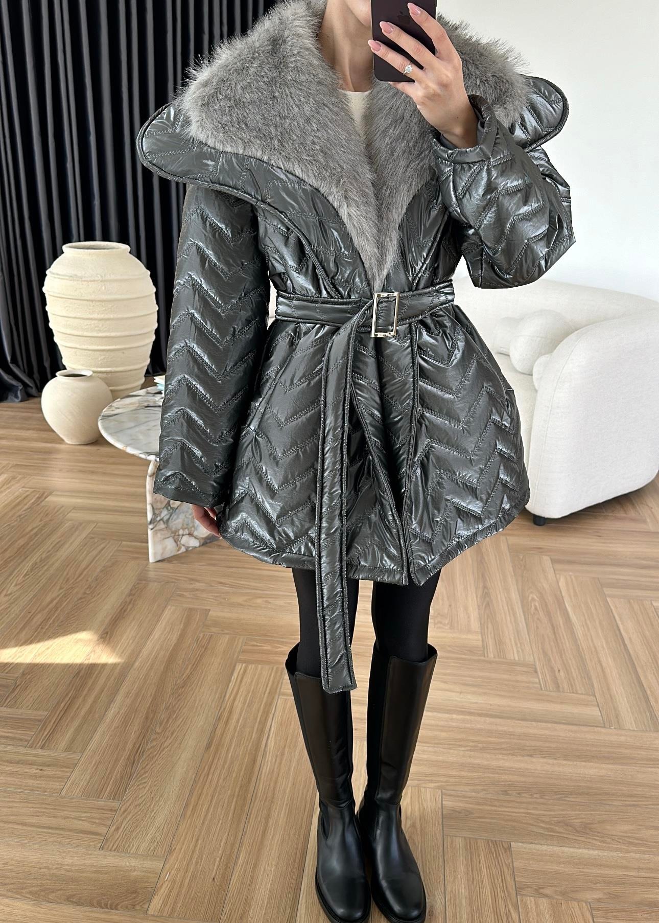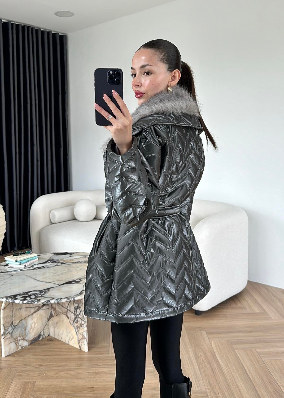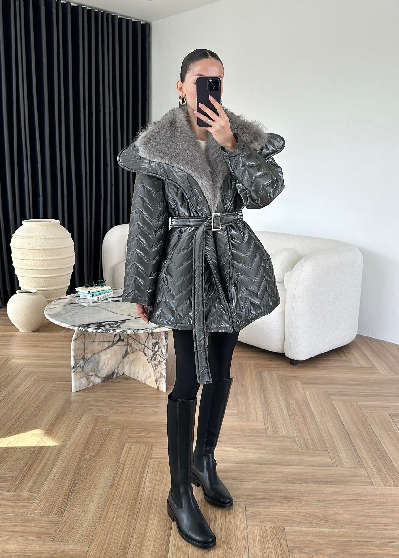 Rugan Kürk Detaylı Mont ANTRASİT
