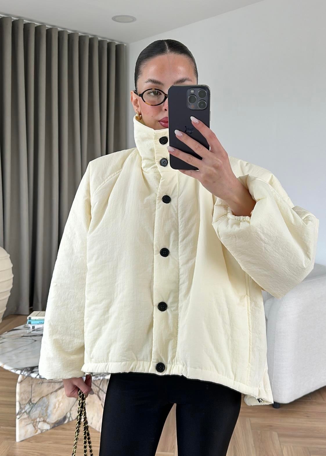 Dik Yakalı Arkası Uzun Mont EKRU