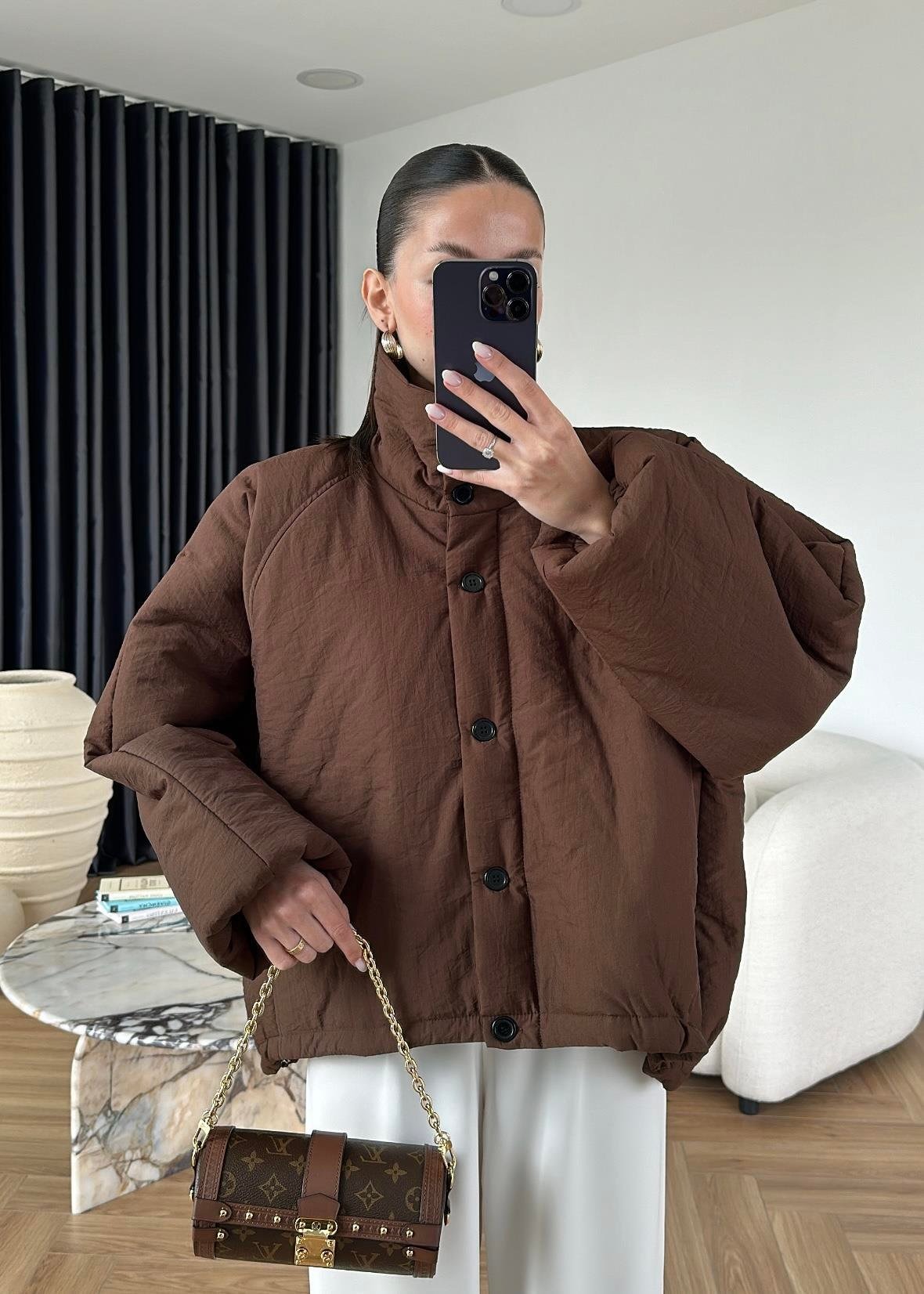 Dik Yakalı Arkası Uzun Mont KAHVE