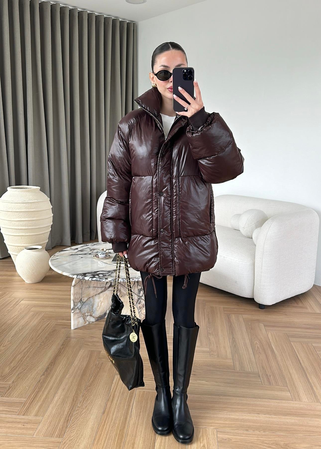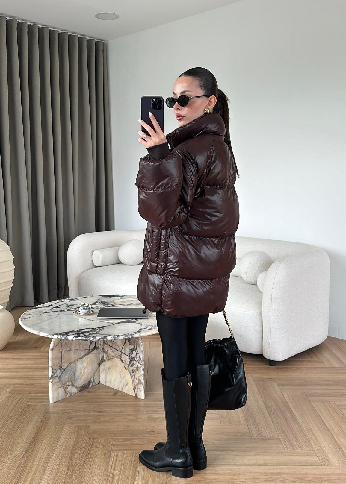 Parlak Dokulu Şişme Mont MÜRDÜM