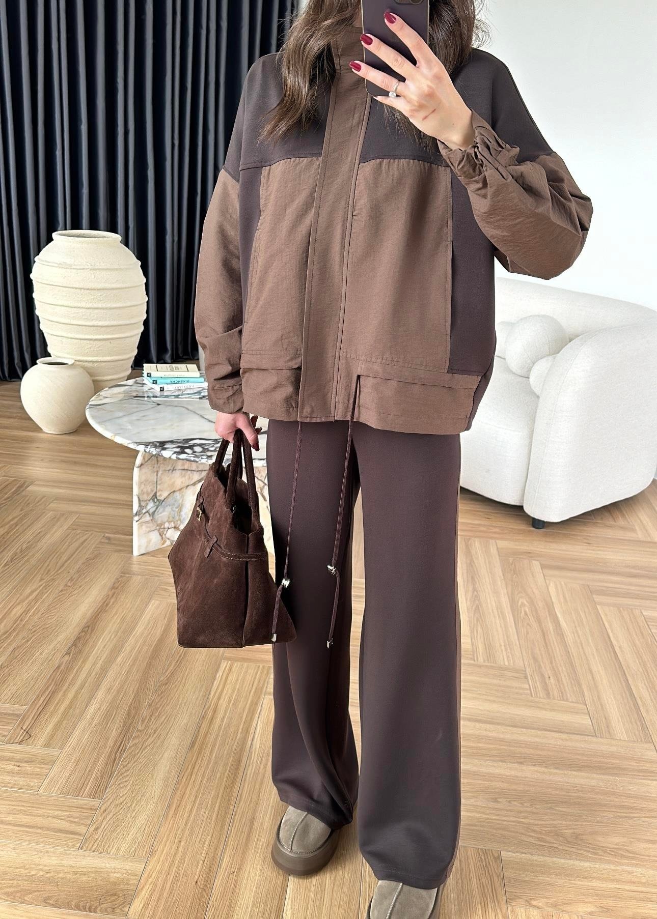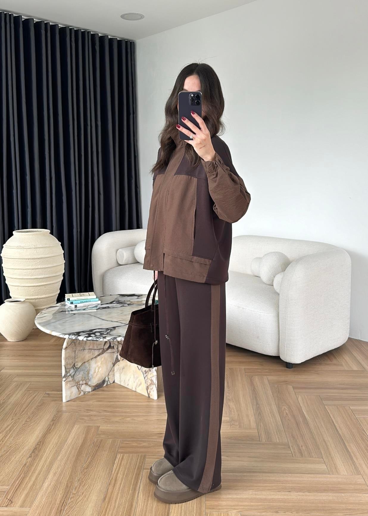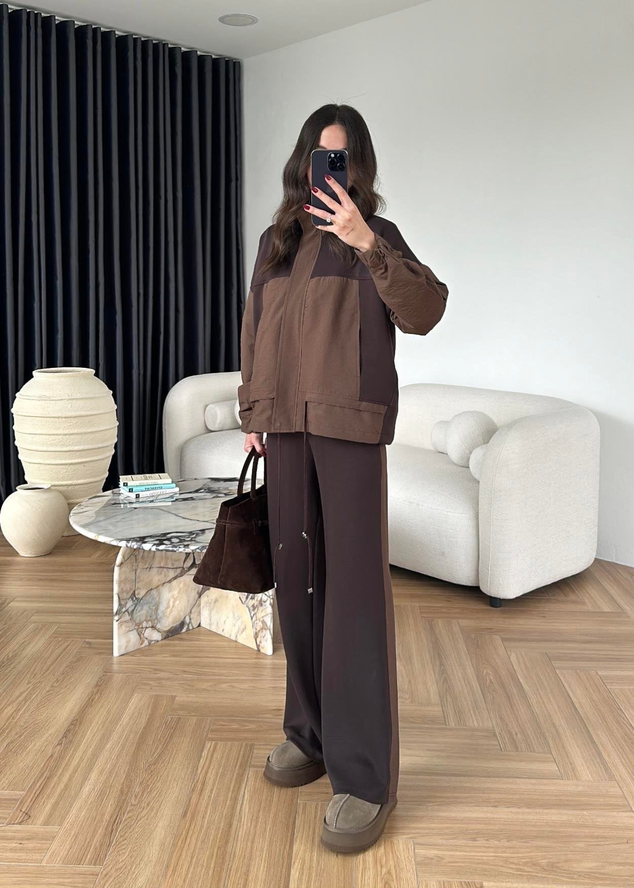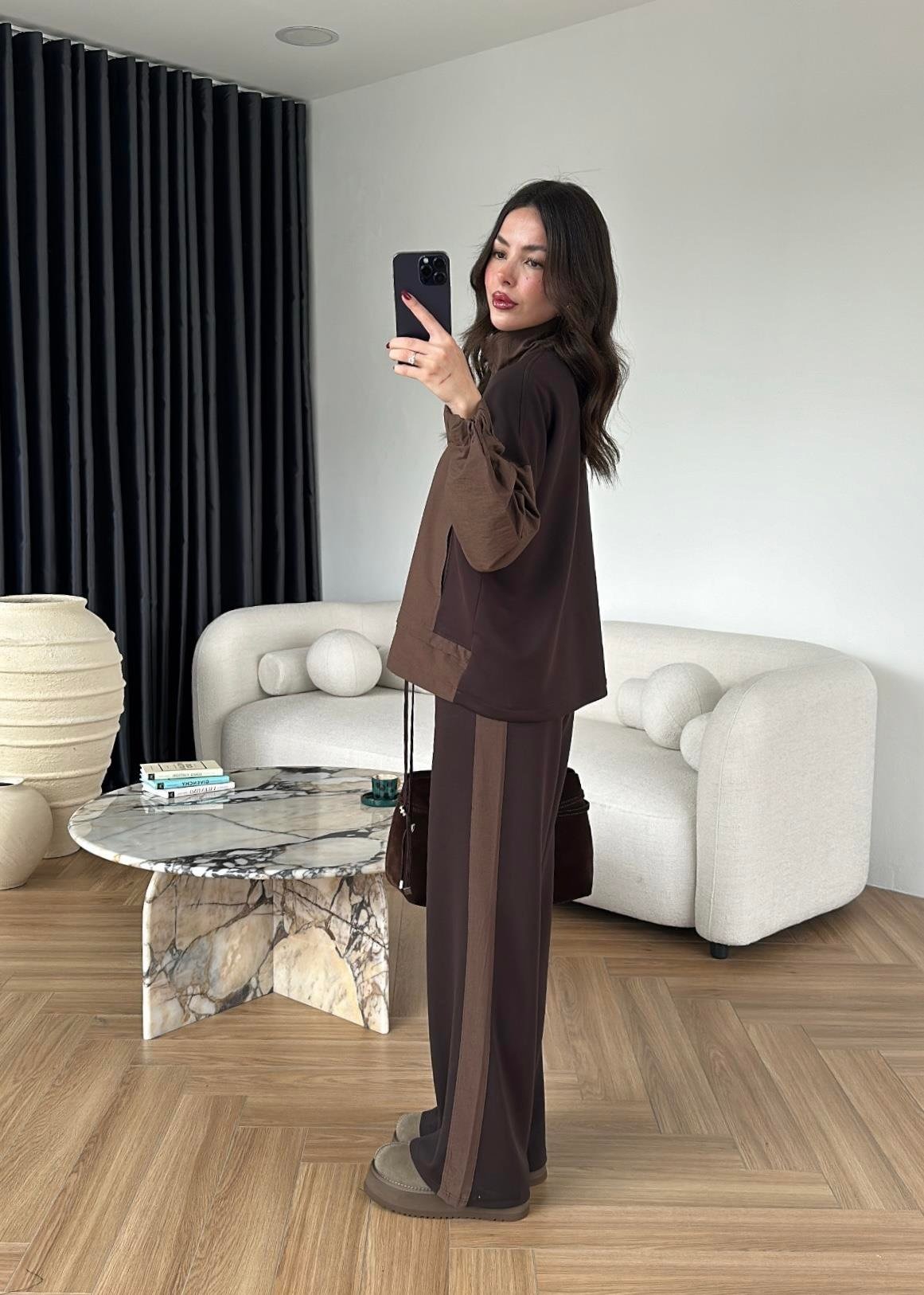 Paraşüt Detaylı Takım KAHVERENGİ