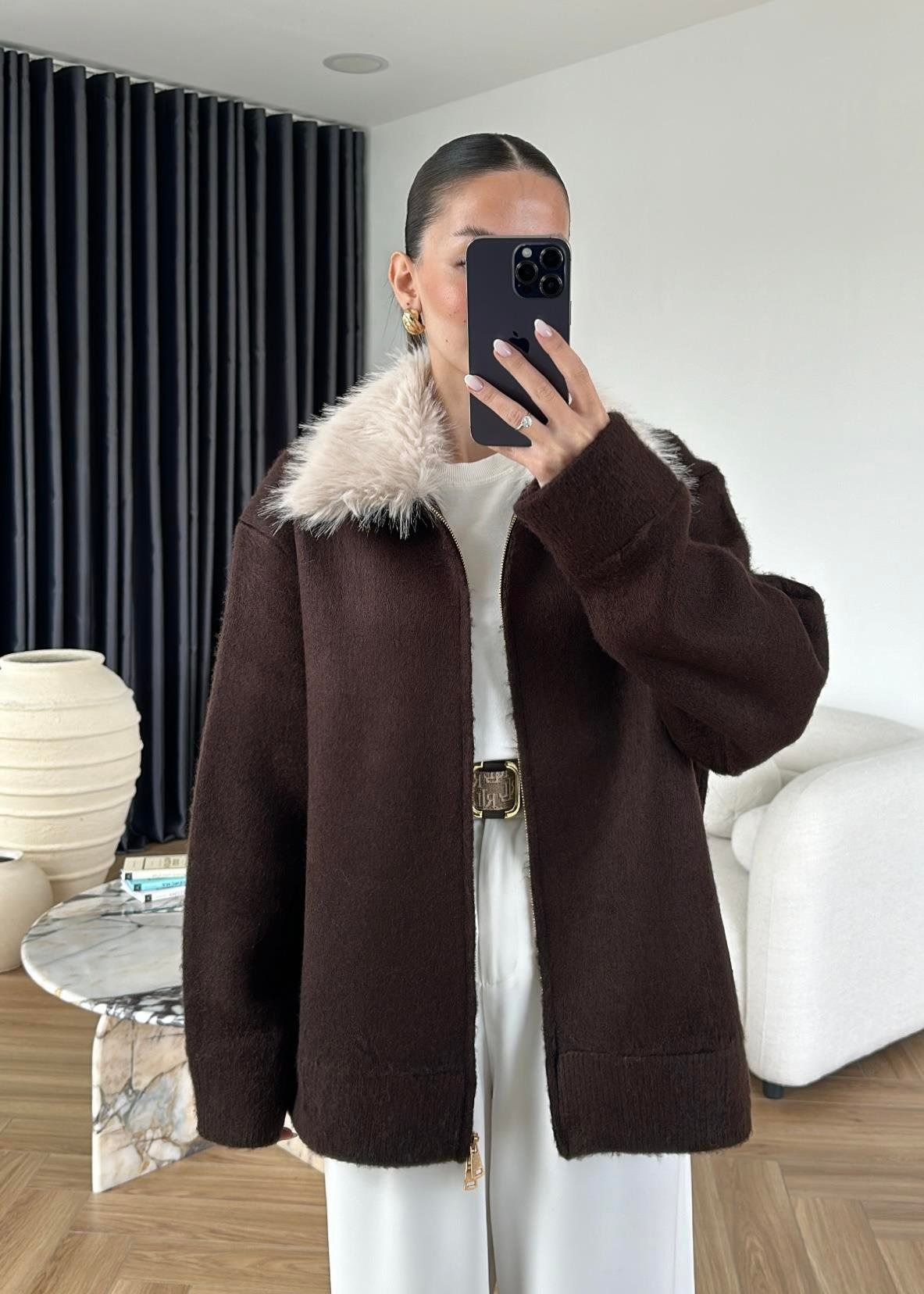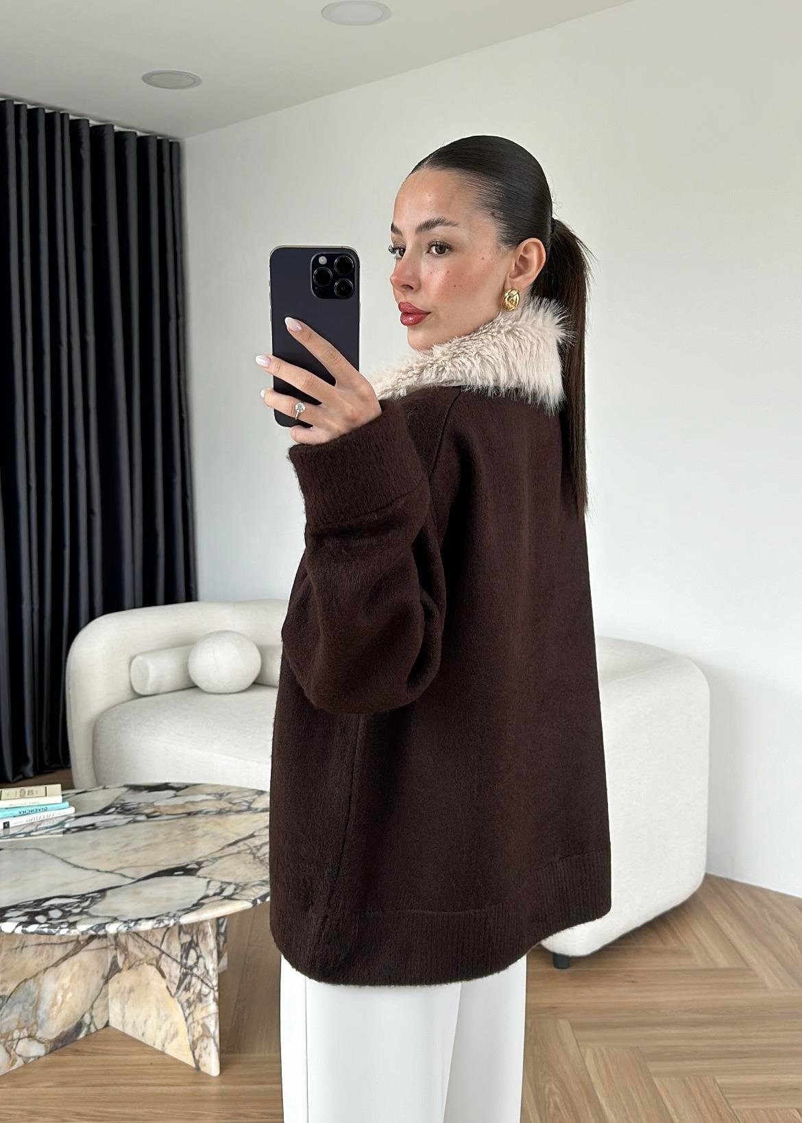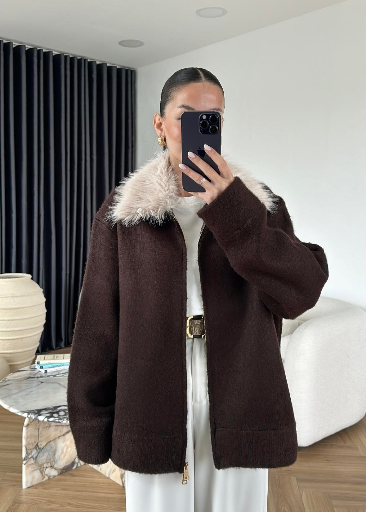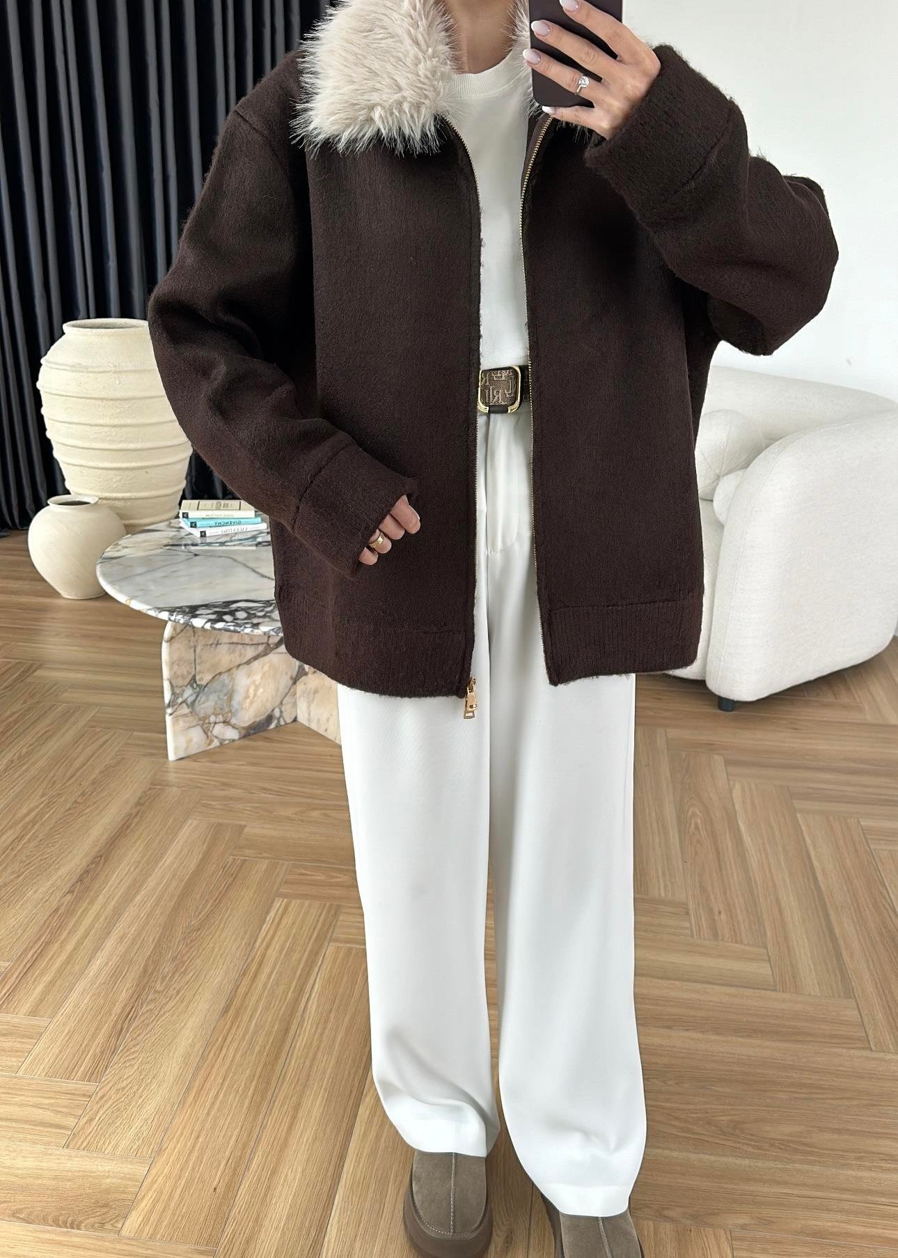 Çıkarılabilir Kürklü Hırka ACI KAHVE